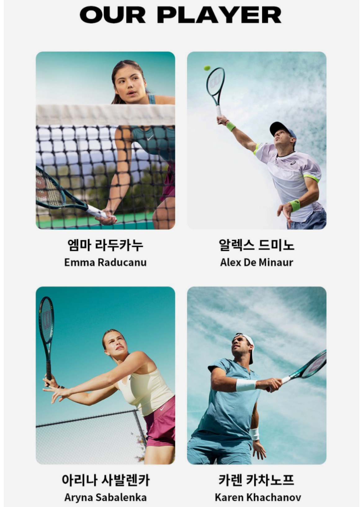 현재 블레이드 라켓을 쓰고있는 유명 선수들이고 라두카누는 이번 코리아오픈에도 출전한다고 알려져 많는 테니스팬들이 기다리고 있습니다!