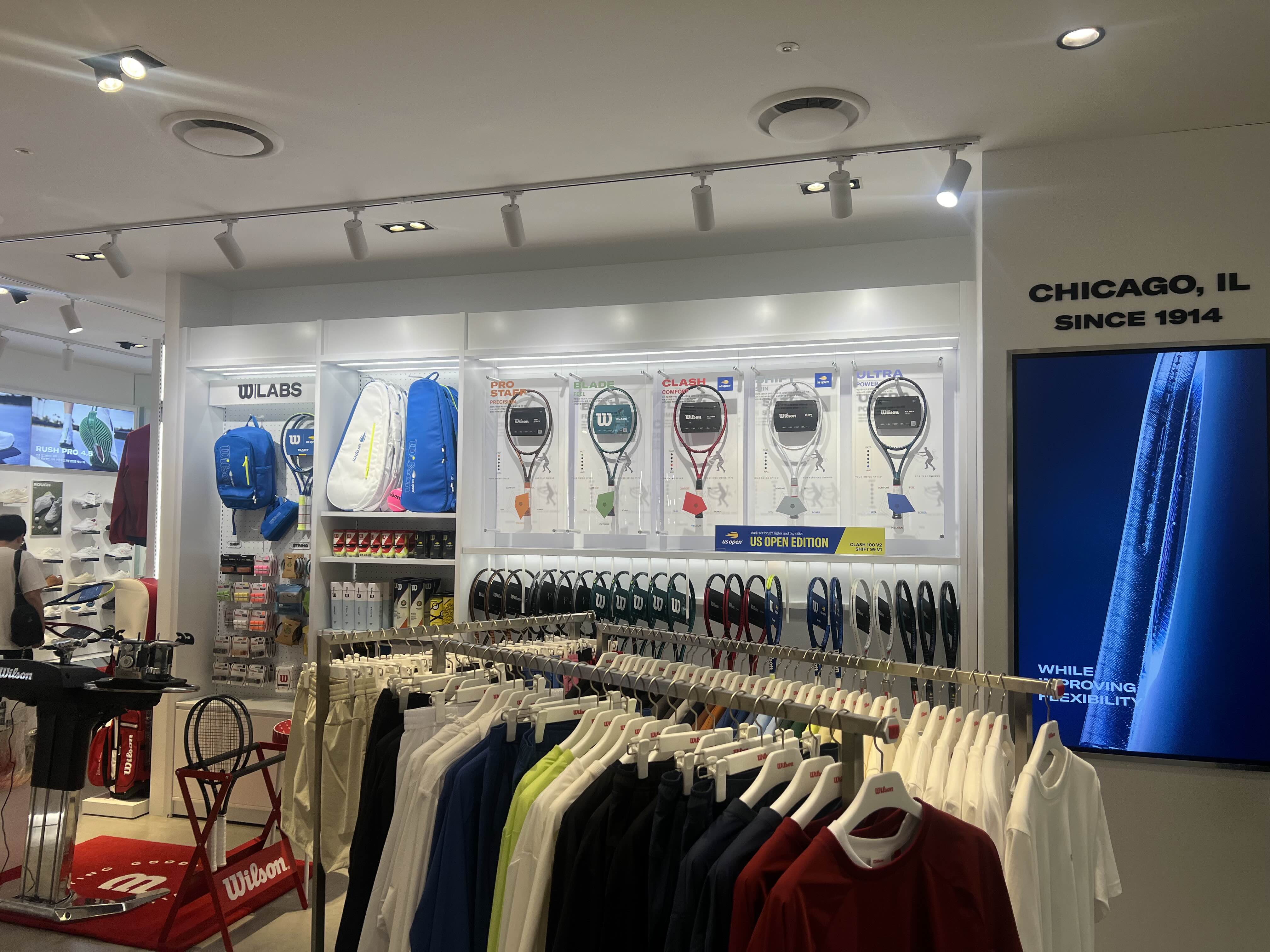 윌슨 매장에 온 이유 중 하나는 당연히 테니스 라켓이겠죠? RF 컬렉션부터 프로스태프, 블레이드, 쉬프트, 울트라까지 다양한 모델들이 전시되어 있었습니다. 그리고 테니스화도 종류별로 다양하게 있어요. 러쉬프로와 리스폰스 프로 같은 인기 모델도 쉽게 찾을 수 있었어요. 이 모든 것이 전시되어 있어서 어떤 라켓이 나에게 맞을지 실제로 만져보고 서 보며 선택할 수 있었습니다.
