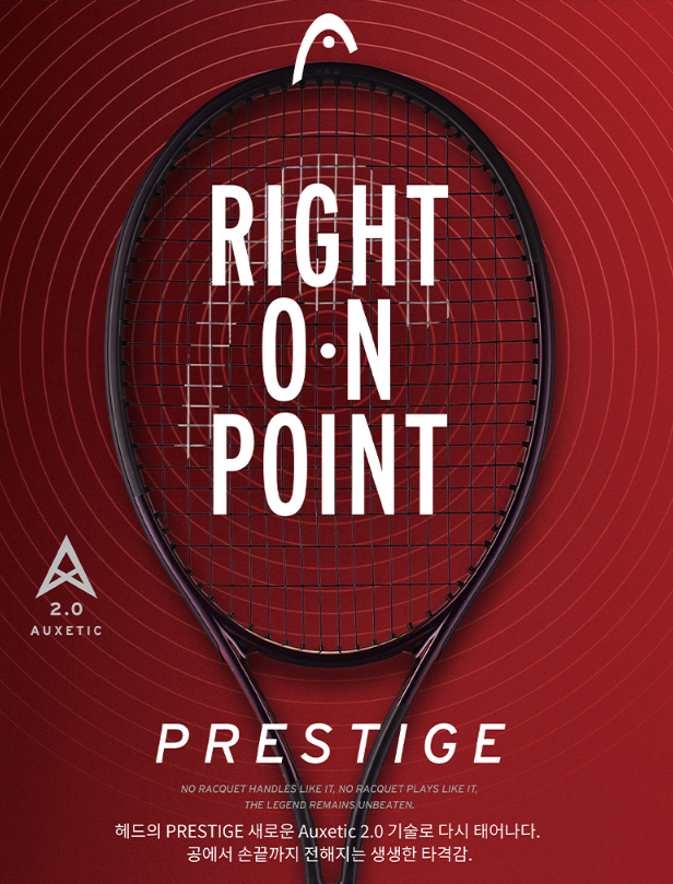 테니스 라켓 중 ‘정확성’ 하면 떠오르는 이름, 바로 HEAD Prestige입니다.